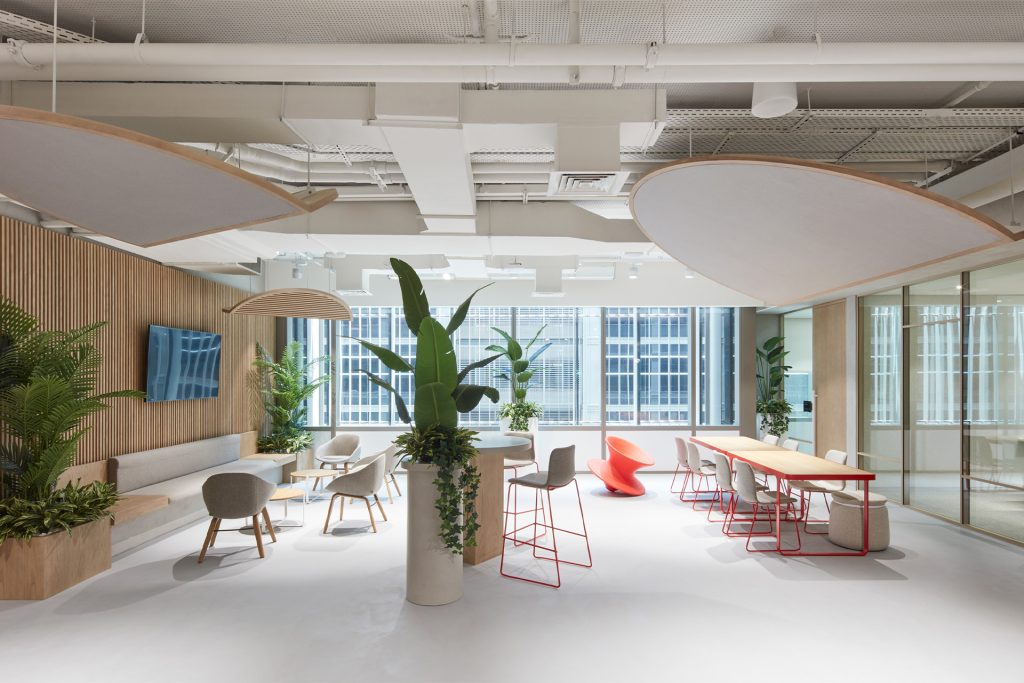 In The NEST project for Schneider Electric, we created vibrant biophilic hubs with living greenery, timber tones, and natural textures throughout. The result? A space where people actually want to spend their day, with collaboration zones that feel energising rather than draining.